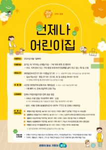 ‘언제나 어린이집’은 맞벌이․자영업, 갑작스런 돌봄이 필요한 가정 등 일시적․긴급한 상황에 언제든지 안심하고 자녀를 맡길 수 있는 365일 24시간 운영 보육시설이다.